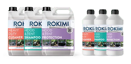 - Wassen en reinigen van het doek met ROKIMI Hood & Tent Shampoo